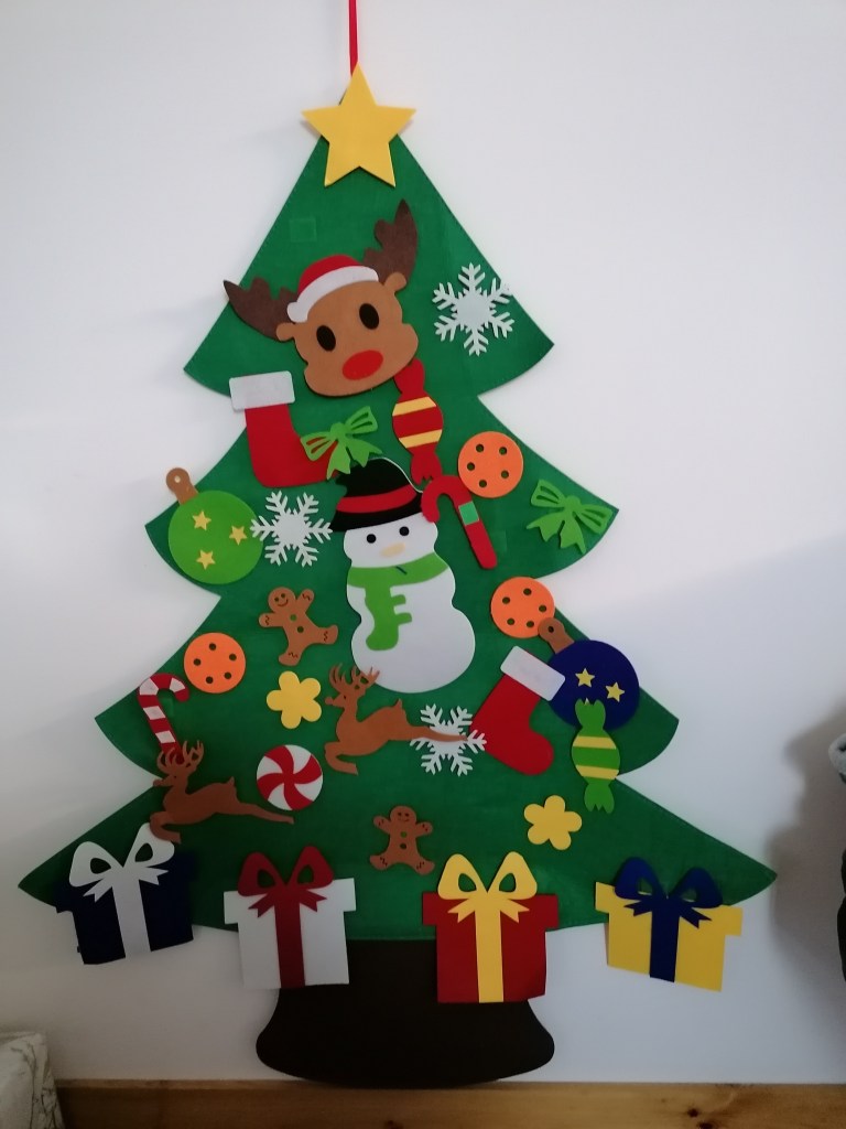- A fabric tree with decorations attached by Velcro which could be played with and be safer for a child who tends to mouth things.