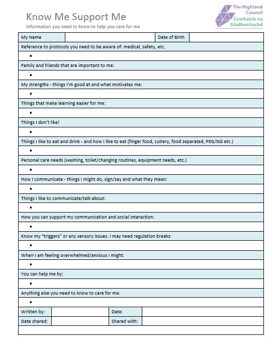 For more information and guidance around creating personalised information booklets see “All About Me” Guidance.